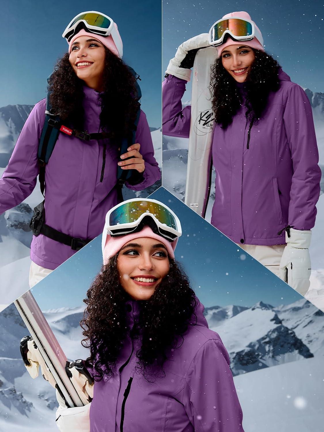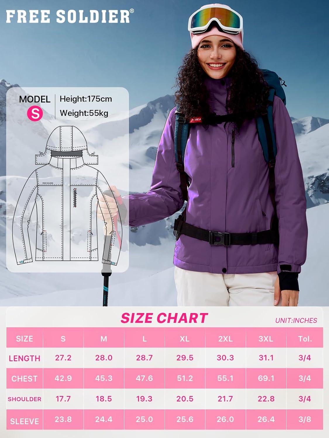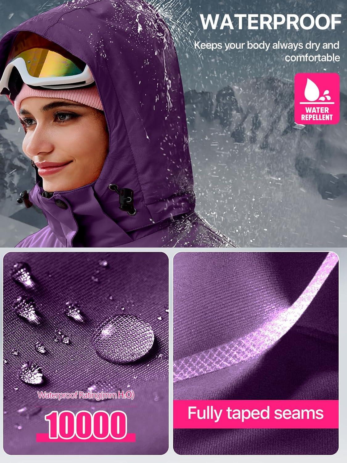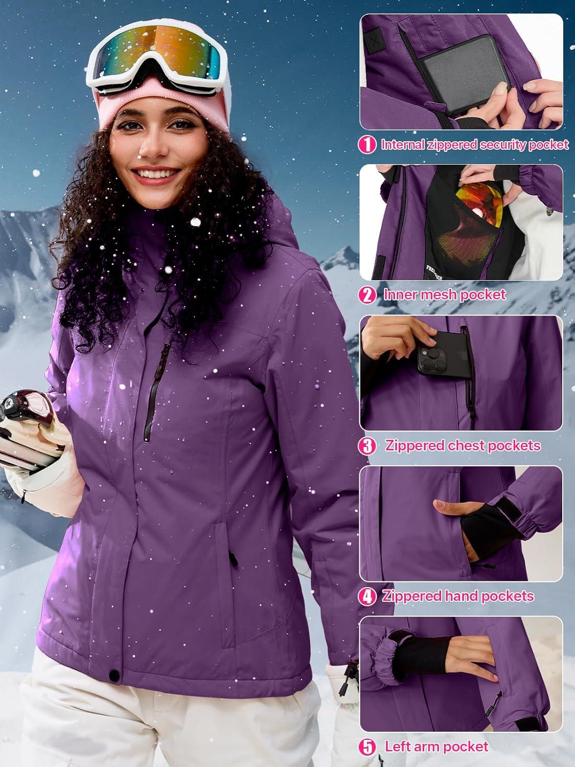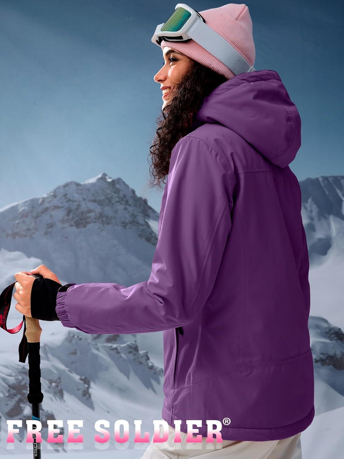 FREE SOLDIER Women's Waterproof Ski Snow Jacket Fleece Lined Warm Winter Rain Jacket with Hood Fully Taped Seams(Purple)