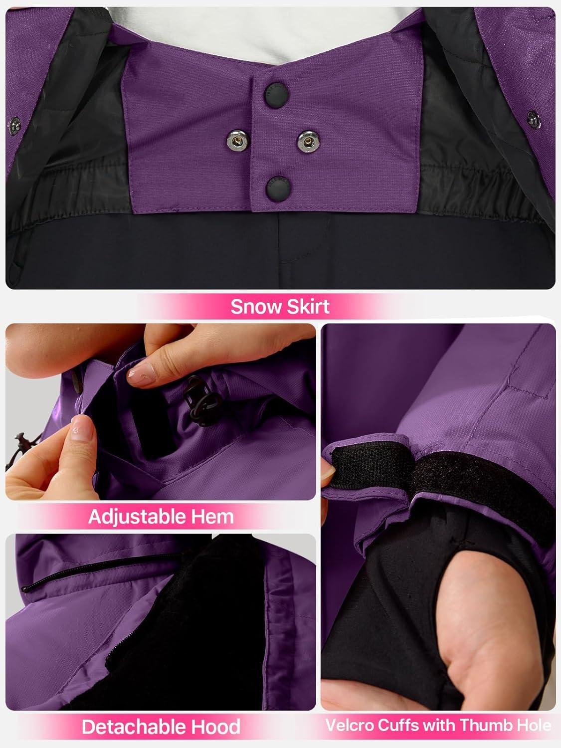 imageFREE SOLDIER Womens Waterproof Ski Snow Jacket Fleece Lined Warm Winter Rain Jacket with Hood Fully Taped SeamsPurple