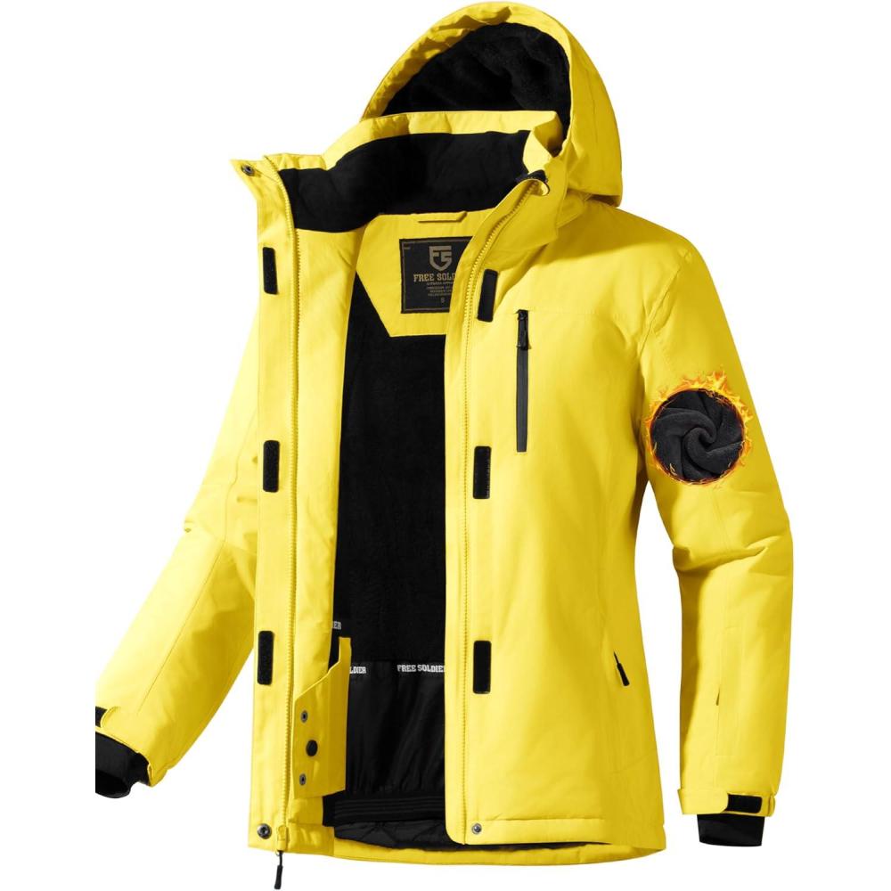 FREE SOLDIER Women’s Waterproof Ski Snow Jacket Fleece Lined Warm Winter Rain Jacket with Hood Fully Taped Seams(Yellow)