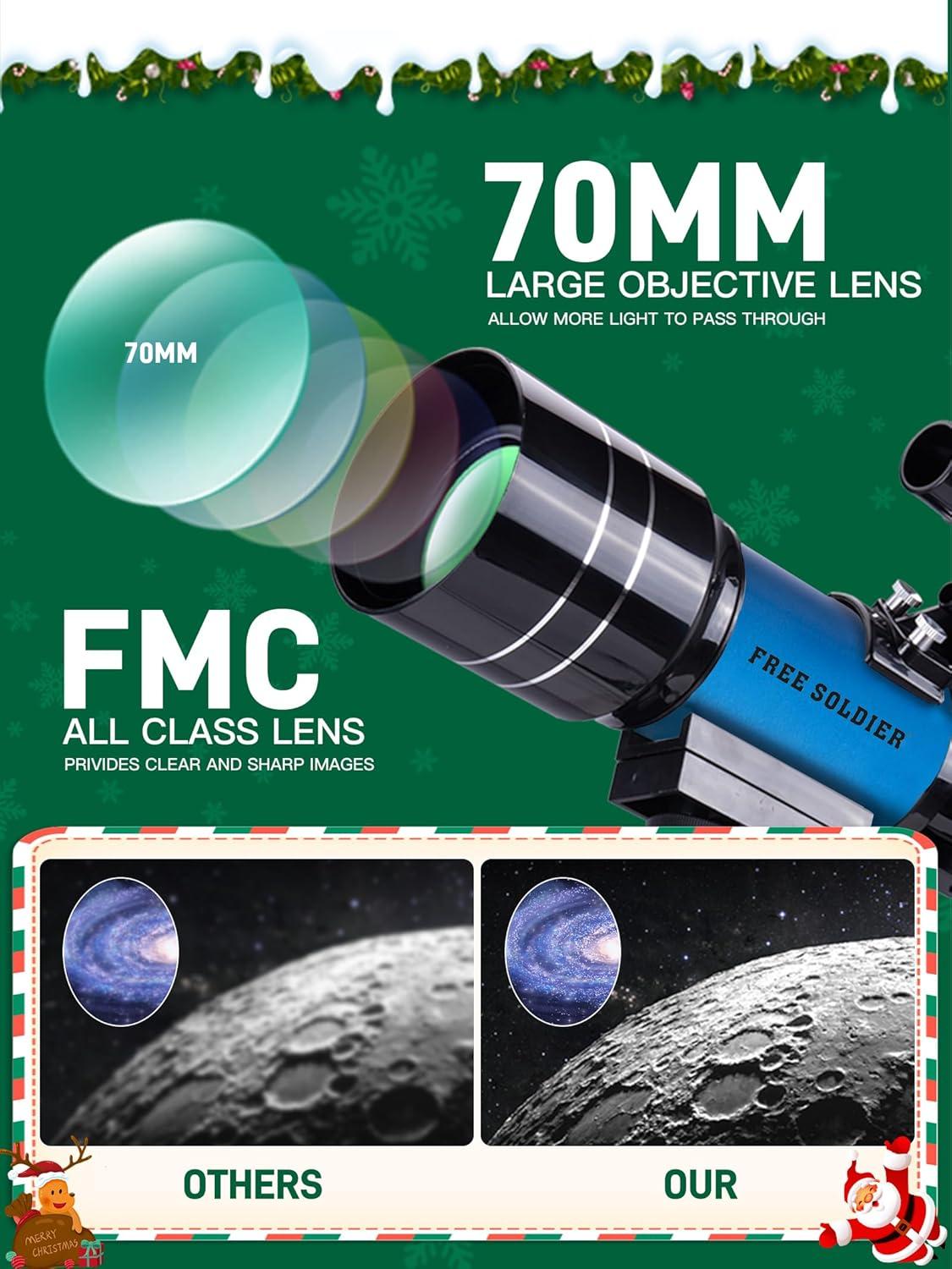 Superior Optics: The telescope for viewing planets has a focal length of 400mm and is equipped with a 70mm aperture, fully coated optics glass lens with high transmission coatings creates stunning images and protect your eyes. Perfect telescope for astronomers to explore stars and moon.