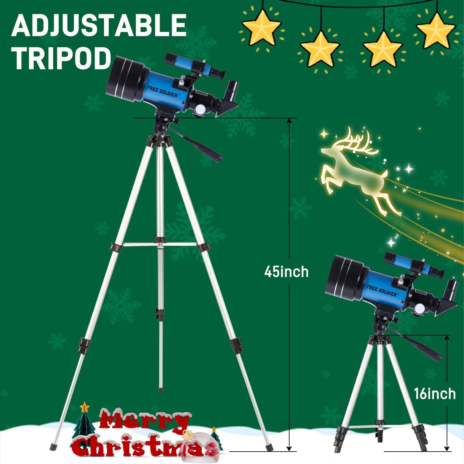 Smart Phone Adapter and Wireless Remote and Tripod: The best telescopes for beginners set includes one smart phone adapter and one wireless camera remote to explore the nature of the world easily through the screen and take amazing celestial images. This telescopes for age over 8 years old also includes an adjustable tripod. You can adjust the tripod according to your height.