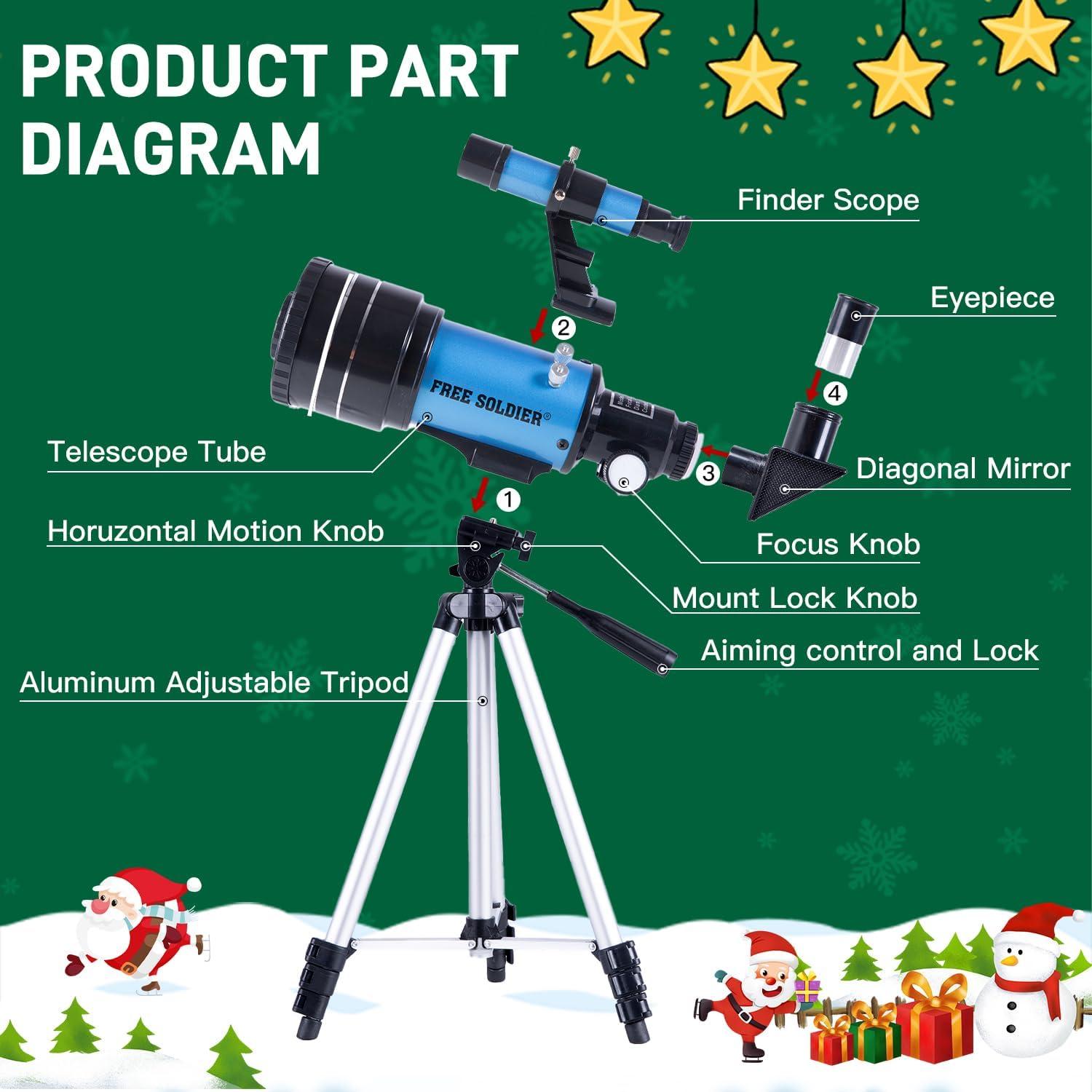 Great present Ideas and Quality Service: Portable telescope is a perfect birthday present. It helps them build interest in astronomy and science. If you have any questions about the product and service, please feel free to contact us, we will do our best to help you in 24 hours. Warning: CHOKING HAZARD- small parts, not for children under 3 years.